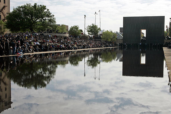 Today there’s a memorial in front of Murrah Federal Building to remember the tragedy. Pool is the moment of explosion. There are stone and bronze chairs on the memorial also. It’s one chair for each person lost. There are also smaller seats for children died in the explosion. “Survivor tree” is on the opposite side and it’s for survivors of blast.